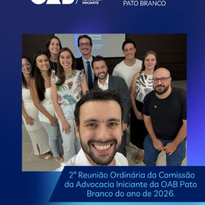 No dia 18 de março, a Comissão da Advocacia Iniciante da OAB/PR Subseção de Pato Branco realizou sua segunda reunião ordinária de 2026. O encontro foi marcado pelo alinhamento e continuidade dos novos projetos da Comissão, além da discussão de novas ações voltadas ao fortalecimento e valorização da jovem advocacia....