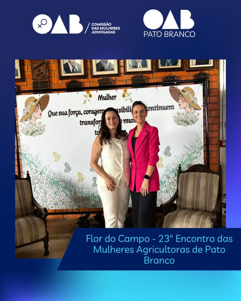 No dia 05 de março, a Presidente da Comissão das Mulheres Advogadas, Dra. Ana Lúcia Garcia Mendes, e a Presidente da Comissão de Direito Público/Advocacia Pública, Dra. Ana Paula Freitag Carneiro, estiveram presentes no evento Flor do Campo – 23º Encontro das Mulheres Agricultoras de Pato Branco, representando a OAB/PR Subseção de Pato Branco.