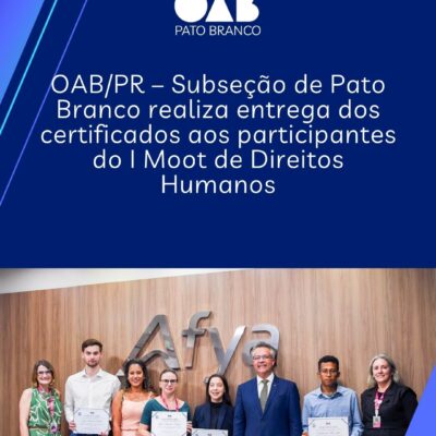 OAB/PR – Subseção de Pato Branco realiza entrega dos certificados aos participantes do I Moot de Direitos Humanos