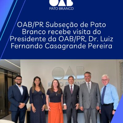 Na última quarta-feira (25), o Presidente da OAB/PR Subseção de Pato Branco, Dr. Luiz Fernando de Oliveira Viana Filho, recebeu o Presidente da Ordem dos Advogados do Brasil – Seccional do Paraná, Dr. Luiz Fernando Casagrande Pereira, o Conselheiro Federal Dr. Cássio Lisandro Telles, a Conselheira Estadual Dra. Tânia Mara...