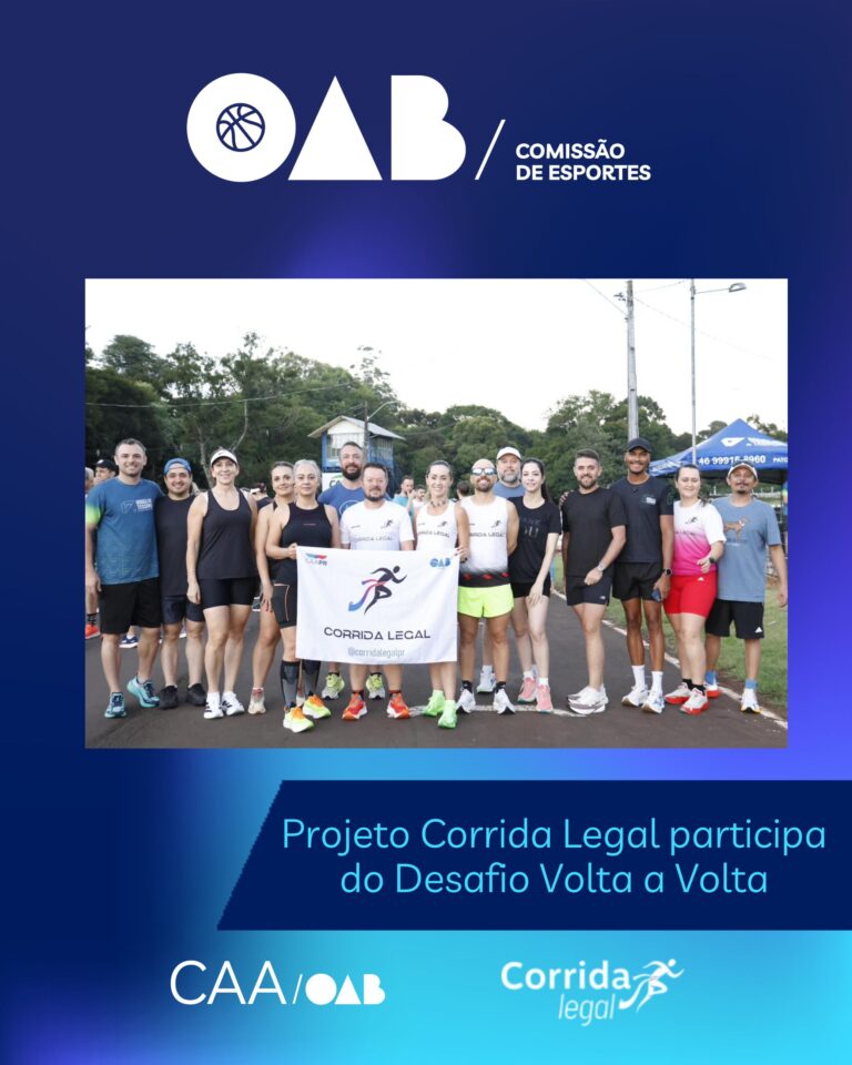 Advogada e advogado, venha fazer parte do Projeto Corrida Legal! Os treinos acontecem todas as terças e quintas-feiras, às 19h15 e são uma excelente oportunidade para cuidar da saúde, aliviar o estresse do dia a dia e fortalecer a integração entre colegas. Garanta sua participação realizando sua inscrição pelo link: https://www.caapr.org.br/projetos/corrida-legal
