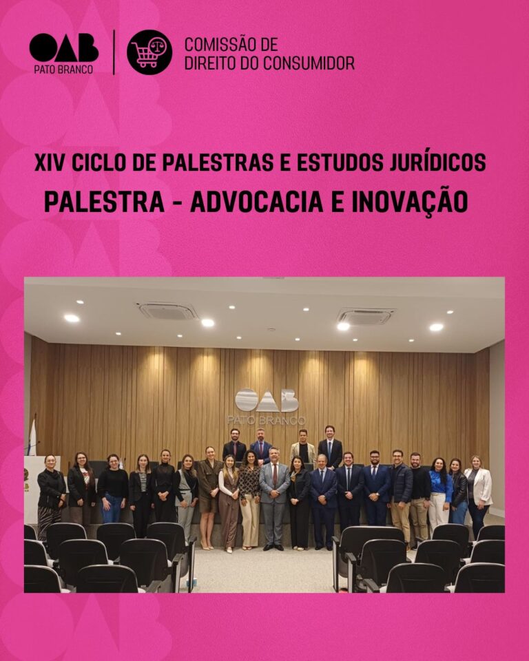Ontem, dia 19 de agosto de 2025, a OAB/PR – Subseção de Pato Branco, por meio da Comissão de Direito do Consumidor, realizou a palestra “Advocacia e Inovação”, integrando a programação do XIV Ciclo de Palestras e Estudos Jurídicos.